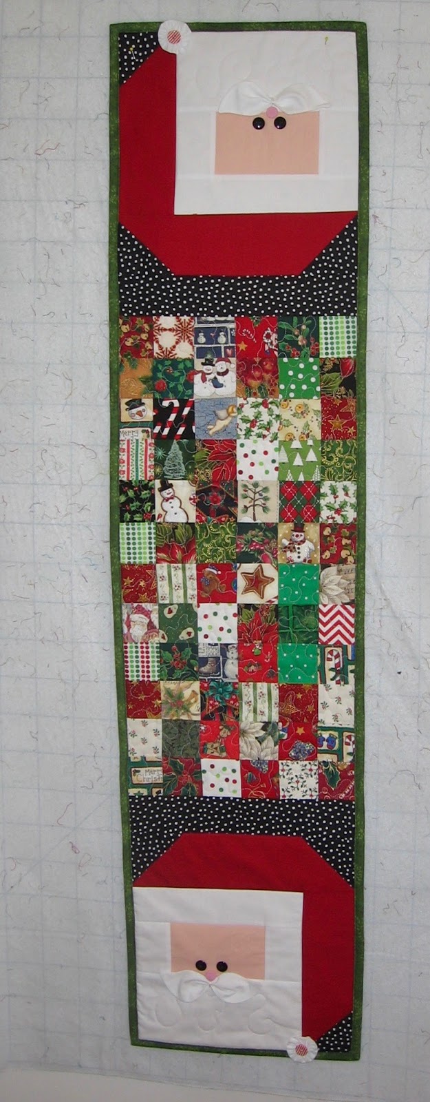 Soon it will be time for Santa to begin his journey.  Until that time arrives this Here Comes Santa table runner will delight all who sit at the table.  The pattern was designed by Chris Malone.